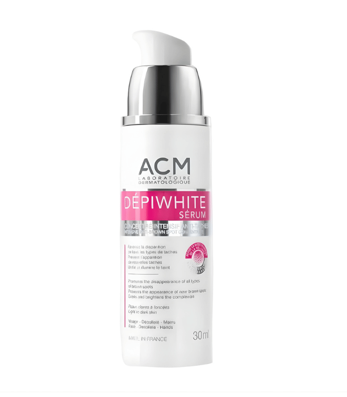 Dépiwhite Sérum Concentré est un soin anti-taches développé par ACM pour cibler les taches pigmentaires visibles et prévenir l’apparition de nouvelles irrégularités du teint.