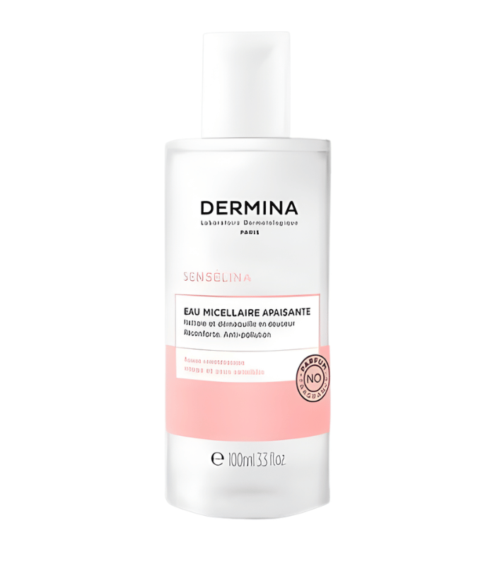 DERMINA Sensélina est une eau micellaire douce. Elle nettoie et démaquille le visage et les yeux.