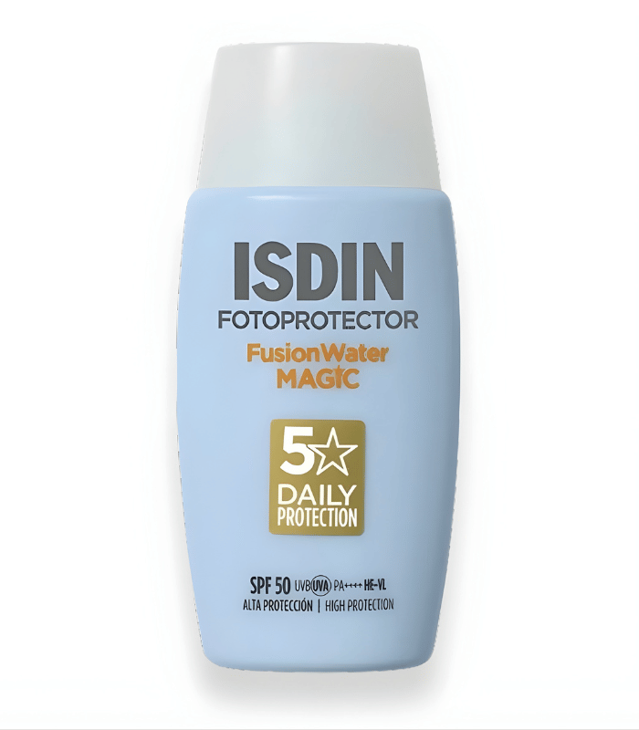 ISDIN Fotoprotector Fusion Water Magic SPF50 50 ml est un photoprotecteur visage conçu pour offrir une très haute protection solaire dans une texture à base d’eau à absorption immédiate. Sa formule 5 Star Daily Protection est testée en conditions réelles de fort rayonnement solaire et associe protection UV, hydratation et action antioxydante.