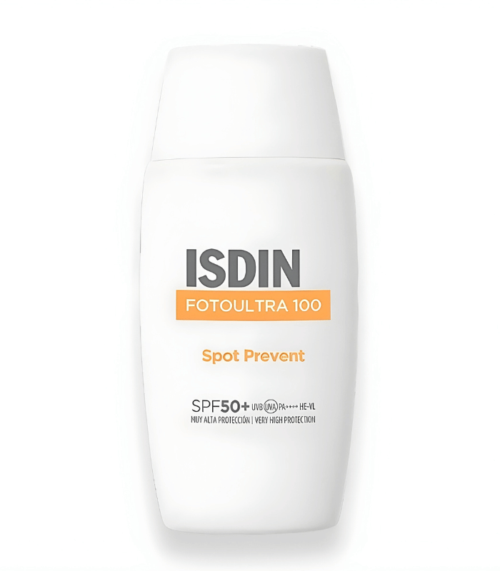 ISDIN FotoUltra 100 Spot Prevent SPF50+ 50 ml est un photoprotecteur visage à très haute protection, spécialement formulé pour prévenir l’apparition des taches pigmentaires dues au soleil. Il offre une protection UVA renforcée et une texture Fusion Fluid légère, invisible et adaptée à un usage quotidien.