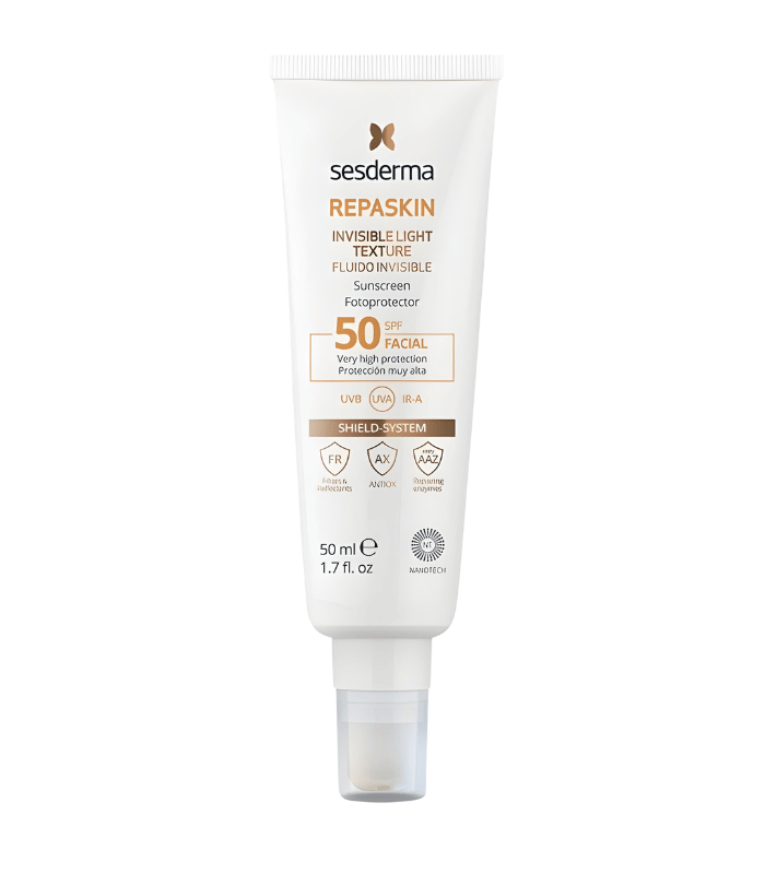 Le fluide solaire invisible Sesderma Repaskin SPF50 est un soin photoprotecteur facial haute performance conçu pour une utilisation quotidienne.