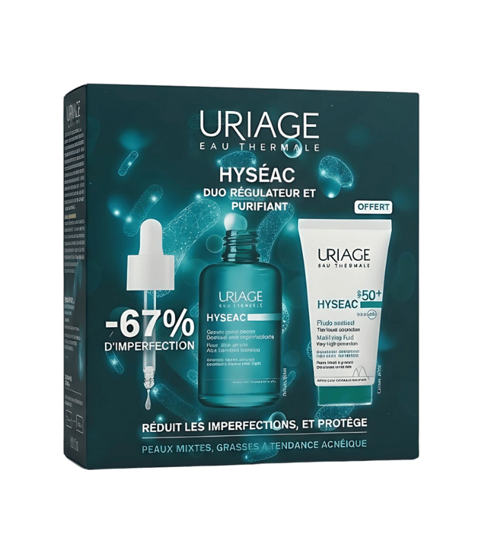 Un pack de soins Uriage Hyséac pour purifier la peau et réguler le sébum. Il aide à améliorer l’aspect des imperfections.